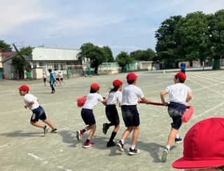 運動会ではやらなかった団体競技。学年の合同体育で行いました。みんなで力を合わせて、楽しんでいました♪