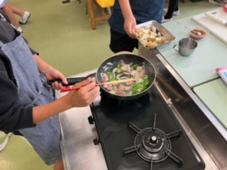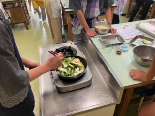 ?今日は3組が調理実習でした。いい匂いに誘われて、休み時間に2年生の子たちが羨ましそうに家庭科室前の廊下から覗いていました。