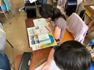 浄水場の仕組みについて、自分で調べて、友だちと意見交換をしていました。