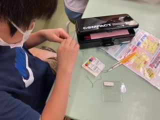 裁縫の学習が始まりました。まずは針に糸を通す練習。なかなか難しいです。