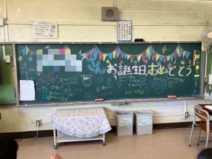 誕生日の子が、今日一日、クラスの主役となっていました。この格好でお勉強していたので、思わずパチリ。