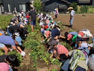 暑い中、みんなでじゃがいも掘りをしました。大収穫。今日の晩ごはんはじゃがいもが出てくるかな?