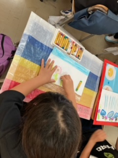 クレパスで絵を描きました。ぼかしをうまく使いながら、上手に描いていました。