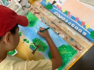 学校の中の風景画を水彩絵の具で描いた作品。もう少しで完成です。素敵な作品です。