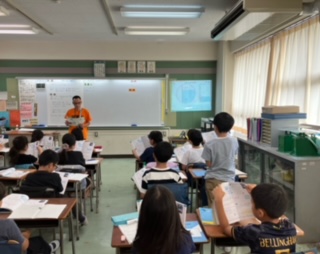 小数の仕組みの学習。数の仕組みなので、10倍、100倍、1/10、1/100など、小数でも位が変わることを学習しました。
