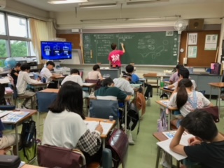 天気の学習。「台風によって、気候はどのように変わっていくか」という学習問題について資料をもとにしながら勉強を進めていました。