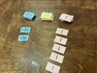 1000までの大きな数の学習。100や10のまとまりで考えます。