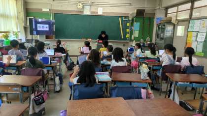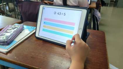 3年生の算数では、あまりのある割り算に取り組んでいます。今日は、iPadのアプリ「ロイロノート」を使って、学習したことが着実に身についているかクイズに挑戦していました。学んだことががどれだけ身についているか、自分で確かめることができます。