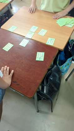 4年3組では、五色百人一首に取り組みました。シーンと静まり返った教室で上の句を読み始めると、一斉にハイ!という元気な声が響き渡ります。集中と緩和の繰り返し。これが子どもたちの力を高めていきます。