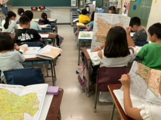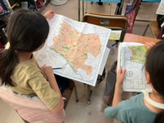 世田谷区の地図を見ながら、区内の特色をみんなで見つけていました。