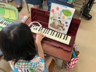 鍵盤ハーモニカで、ドレミの練習。みんなで合わせて、上手に音を鳴らせるかな?