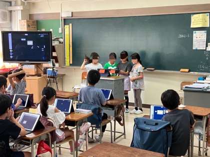 1学期の最後の日。係の活動でクイズ大会、くじ引き大会をしていました。優勝者には、豪華な手作り首飾りが贈呈されました♪