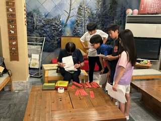 就寝準備が終わった生活班から、看護師さんに保健カードを渡します。