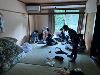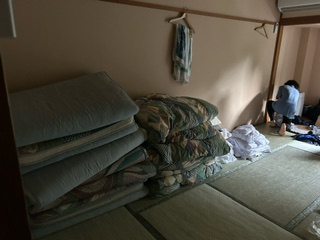 検温を済ませた後、使った布団をきれいに整頓します。