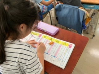 新しい漢字を、とっても丁寧に書きながら覚えていました。
