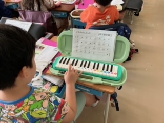 鍵盤ハーモニカでドレミのジェンカを練習しました。指遣いが上手にできていました。