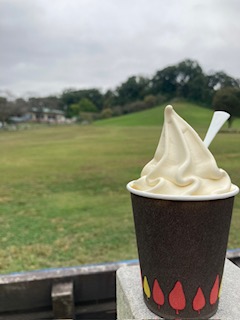牧場で、搾りたてミルクで作ったソフトクリーム。いただきま〜す!