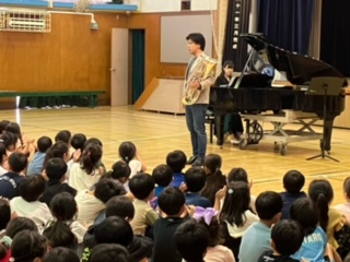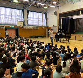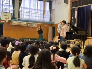 エバリーさんが来校してくださり、今日は体育館でミニコンサート。素敵な音楽をありがとうございます