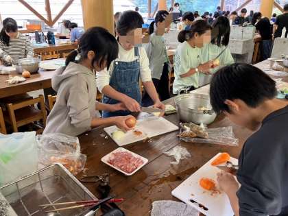 家庭科の調理実習で習ったことを思い出しながら、真剣です。
