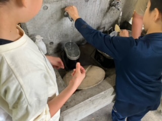 ごちそうさまをして、使ったお鍋や飯盒をきれいに洗いましょう。