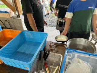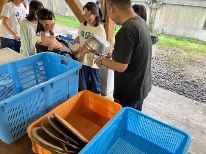 お鍋を洗った後は、ススが残っていないかのチェックを受けます。合格できるかな?