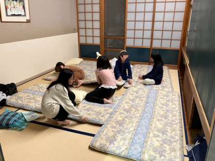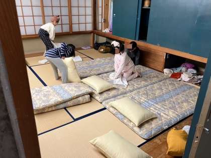 部屋に戻って、みんなでお布団の準備です。