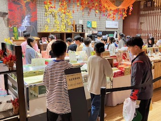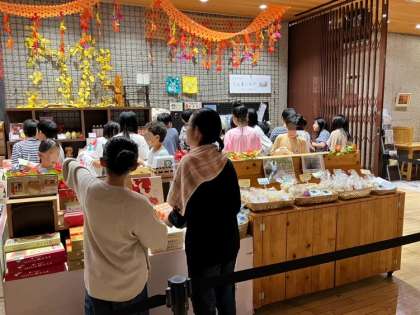 お風呂に入って、お土産を購入しています。お家の人に、どんなお土産を選ぶのかな?