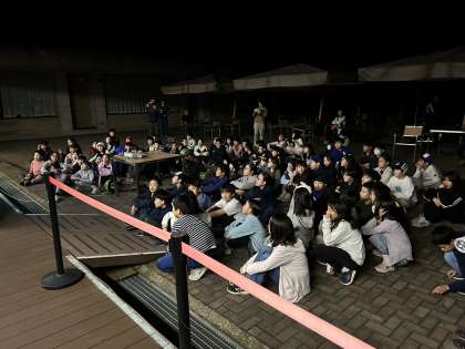 これからナイトハイクのプログラムです。ネイチャーガイドの方から、夜の森で活動する動物たちの紹介をお聞きしました。