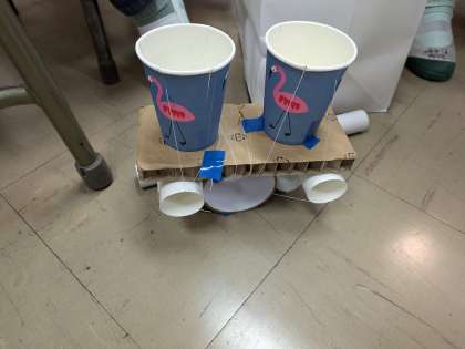 2年生の生活科では、動くおもちゃを作っています。子どもたち一人一人が工夫を凝らしておもちゃを作っては遊び、遊んでは作り直していました。