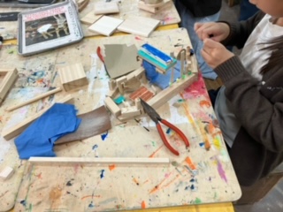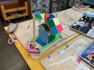3年生は、木材を切ってくっつけてオリジナルのお船を作っていました。いろんな発想があって、見ていてとても楽しくなります