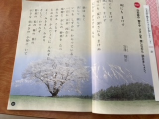 宮沢賢治の「雨にも負けず」を音読していました。初めの7行を暗記している子もいました