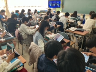 江戸時代の文化について、今につながっている物を色々調べ、タブレットでまとめていました。