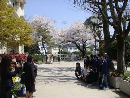 4月7日、ぽかぽか春の陽気で、一気に桜の花も満開です!休み時間、満開の桜の下、子どもたちは元気いっぱい遊んでいました。放課後は、入学式をすませた中学生たちが訪ねてきてくれました。「ご入学、おめでとう!」