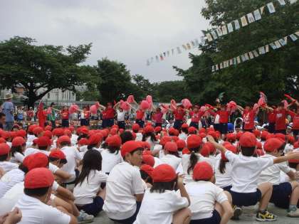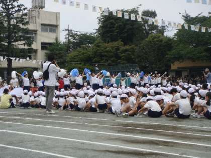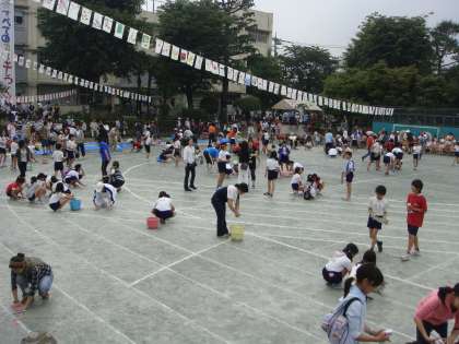 お昼休みにどっと降った激しい雨・・・。でも、5,6年の児童。保護者。地域の方々。卒業生とともに懸命の校庭復旧作業をして、なんとか再会。深沢小が、地域を含めて本当に一つになった気がしました。「チーム深沢」、ありがとうございました。再開後、応援合戦がありました。赤組も、白組も雨雲を吹き飛ばす位大きな声を出していました。
