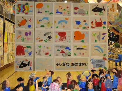 マーブリングでふしぎな海のせかいをつくりました。生きものたちの楽しそうな声が聞こえてきます。