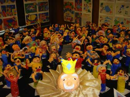 はだかでパレードする王さまを見て「あ!!」とおどろく人々をつくりました。