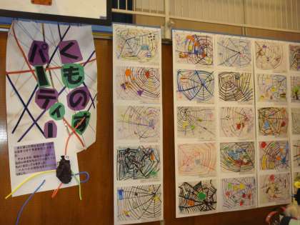 その上から、蜘蛛の巣を描き、自分の好きなもの(つかまえたもの)を貼っていきました。