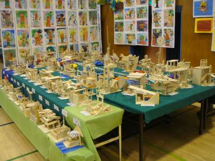 木端(こっぱ)から生まれたこっぱさん。様々な形の木端を組み合わせてこっぱさんが喜ぶこっぱの世界をつくりました。切ることはせず、木端それぞれの形を活かしてつくることがポイントです。様々な形の木端たちはどのようなものに生まれ変わったのでしょうか。