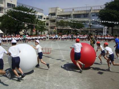 高学年紅白リレーでは、見事な走りとバトンパスを見せてくれました。さすがです。そして、いよいよ最終種目大玉送りです。新しい大玉が大きく見えました。さて、今年の優勝は・・・赤組でした。2日間にわたり繰り広げられた運動会でしたが、赤も白も力一杯の姿を見せてくれました。本当にすばらしい運動会になりました。これも、ひとえに雨の中も含めてご協力下さったPTA役員をはじめとする保護者の皆様、地域の皆様のおかげです。この場を借りて、御礼申し上げます。これからも、深沢小学校をよろしくお願いいたします。