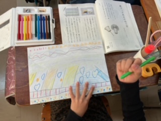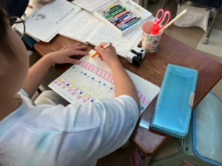 説明文「紙コップ花火の作り方」の学習で、実際に紙コップ花火を作ります。