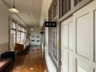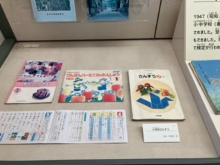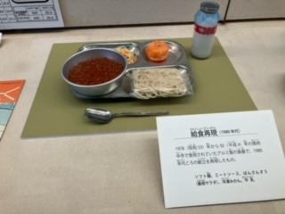 昔の学校がありました。懐かしい教科書や給食が展示されていて、大人も楽しめました。