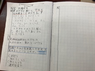 鏡の反射の実験のまとめを、みんなで進めていました。