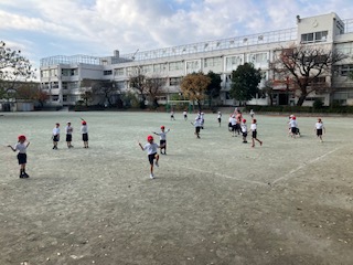 広い校庭で、なわとびをして体を動かしました。後ろ回しとびやあやとびもどんどん挑戦して、上達しています。