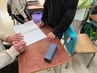 先生にノートを見せて、丸つけチェックをしてもらいました。丸をもらえるか、ドキドキです。