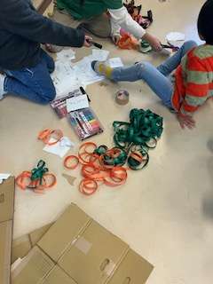 お楽しみ会でやるゲームで使うものを、それぞれの担当で準備していました。なかなかダイナミックです。