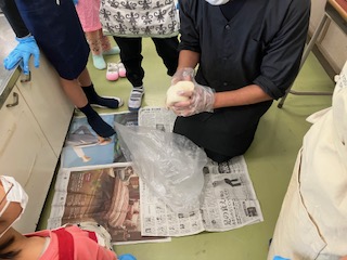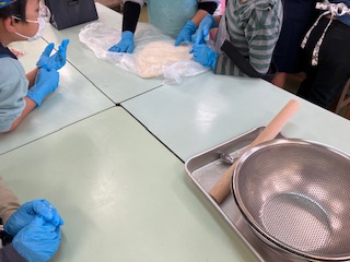 桜新町のうどん屋さんをゲストティーチャーにお招きし、生地から作りました。