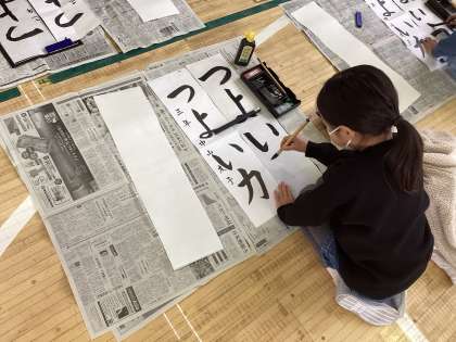 気持ちを新たに、書き初め大会をしました。用紙に丁寧に一文字一文字書くことが出来ました。