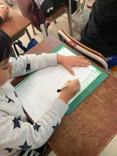 カッターナイフの使い方を勉強しました。集中しないと指を切ってしまうので、しっかり集中して練習します。