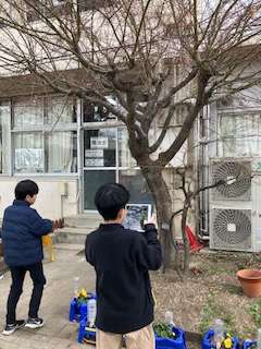 夏、秋の頃は葉がたくさんあった木も、今ではすっかり葉が落ちています。でも、何か木の枝先を見てみると…。冬の植物を観察しました。