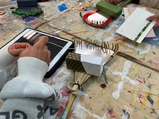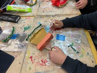 卒業制作の熊手作りがいよいよ始まりました。これから思い思いの飾りをつけながら、作品を作っていきます。